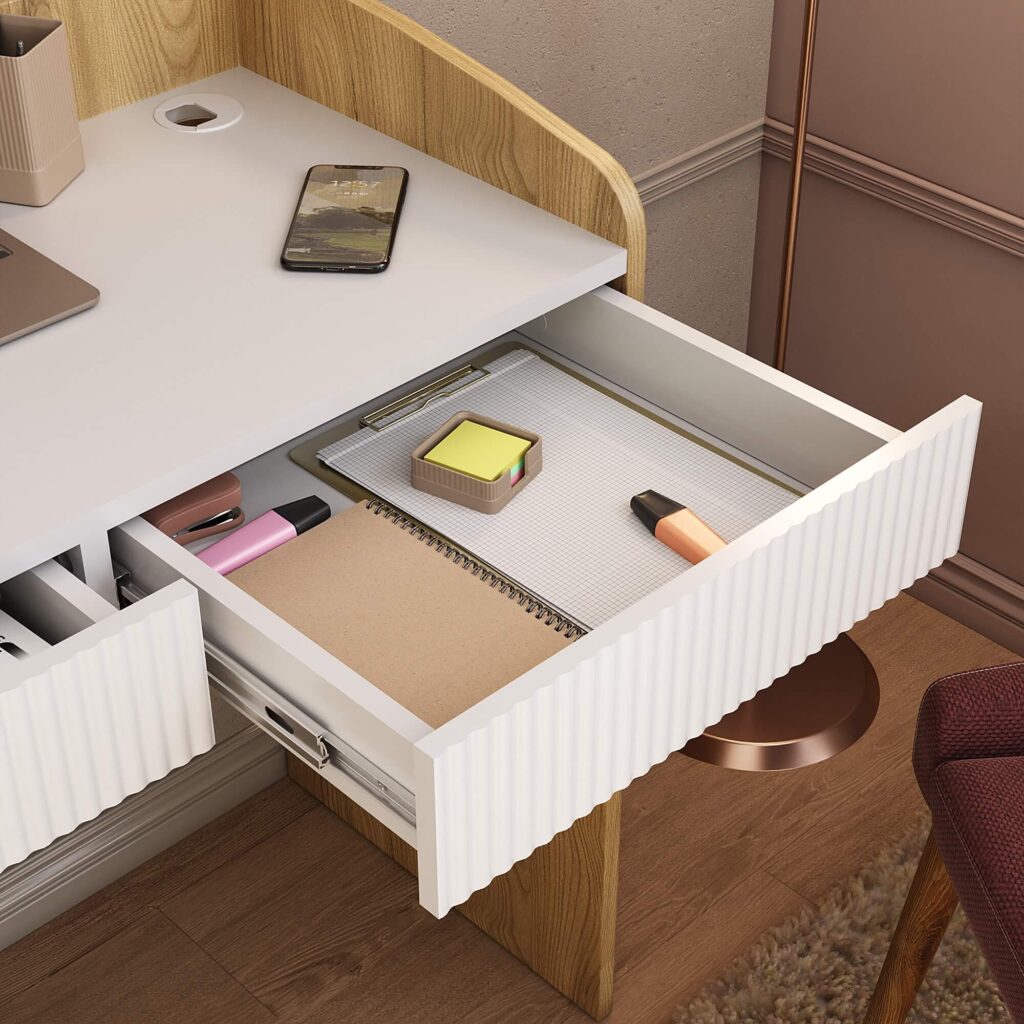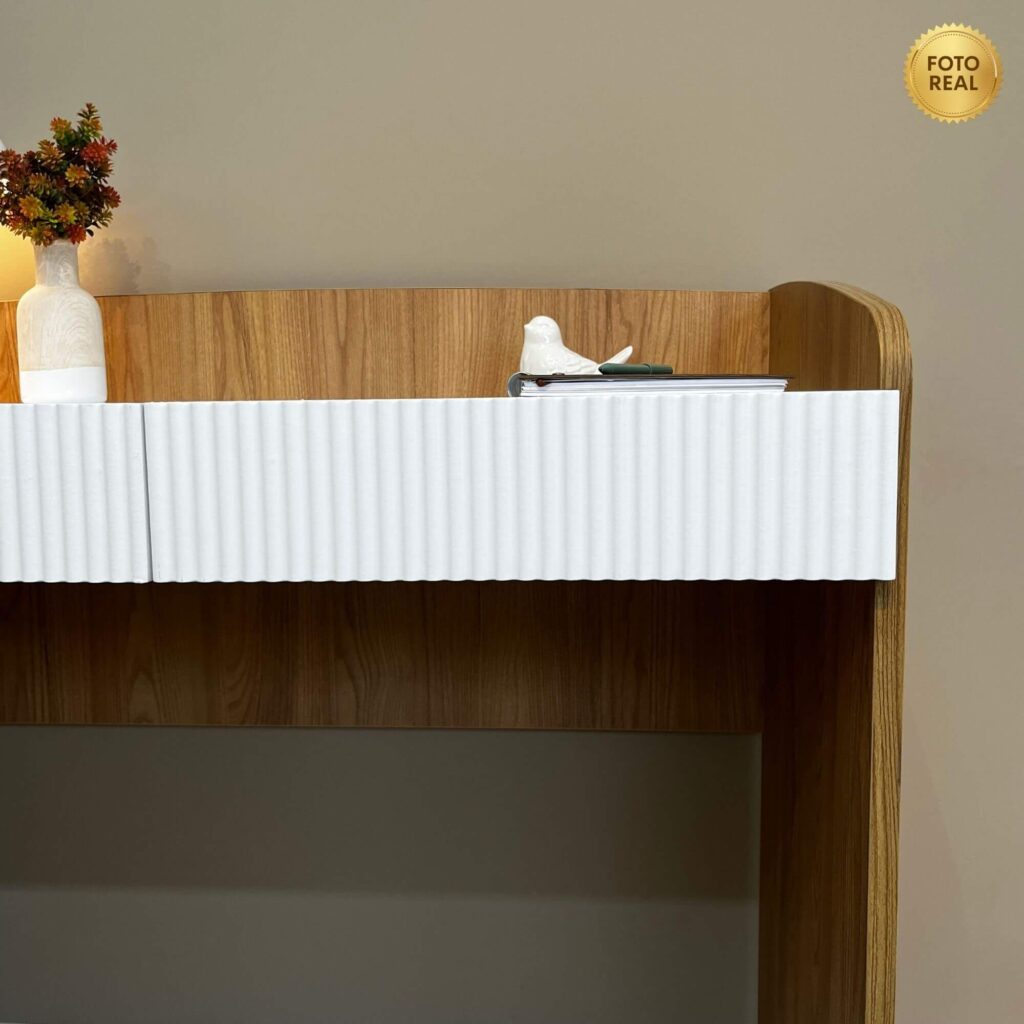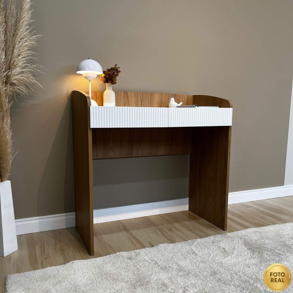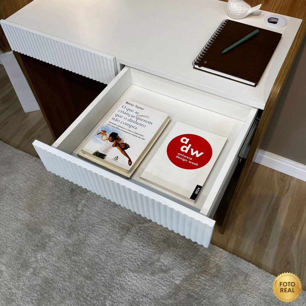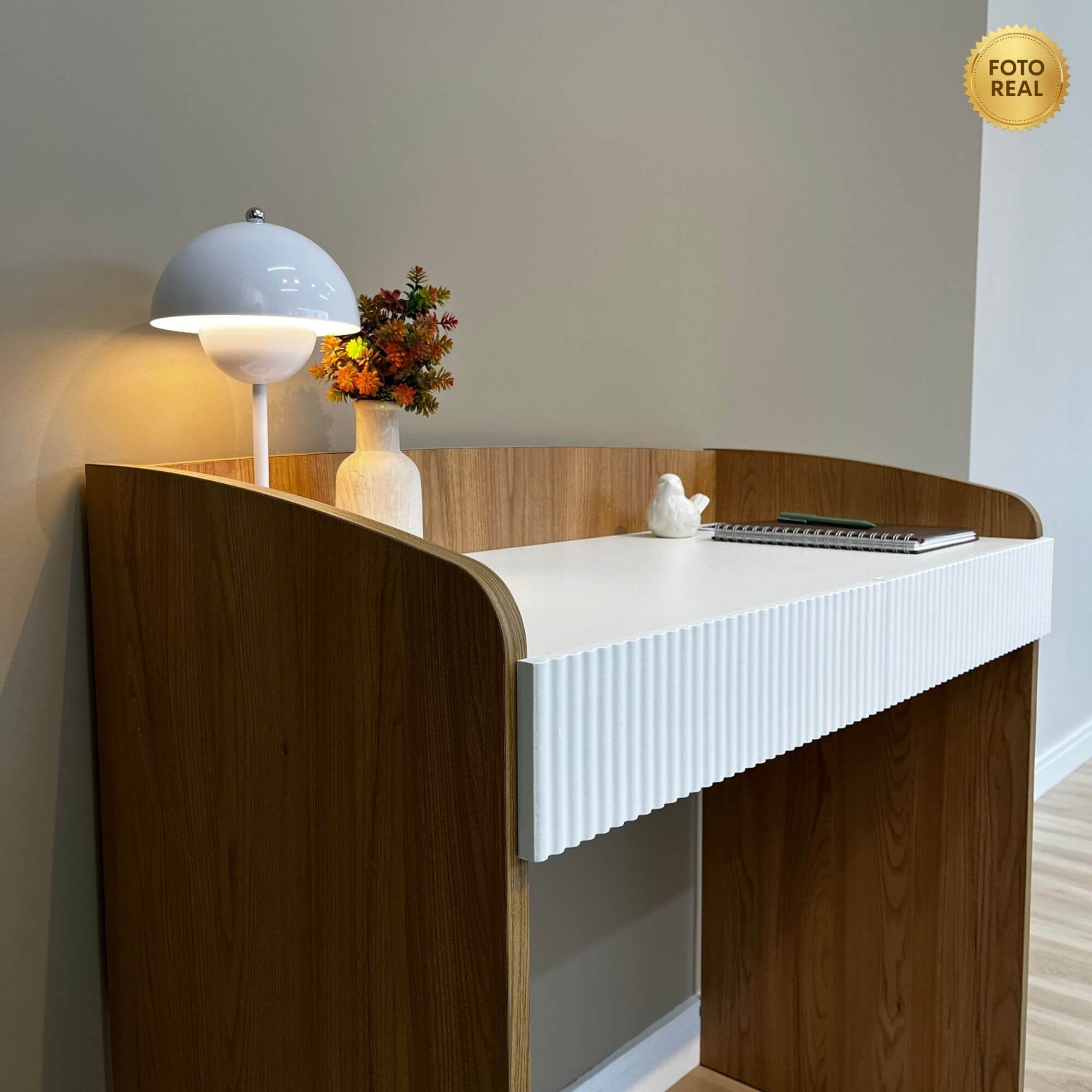 Pensada para ambientes compactos e cheios de personalidade, a Escrivaninha Petit une funcionalidade e delicadeza em um design que encanta à primeira vista. Suas linhas curvas trazem leveza ao ambiente, enquanto os detalhes canelados adicionam um toque sofisticado e atual, transformando o móvel em um verdadeiro destaque na decoração.
